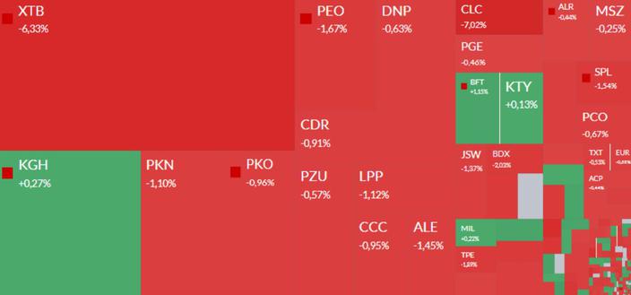 Główny akcjonariusz XTB w procesie przyspieszonej budowy księgi popytu (ABB) sprzedał 8,4 mln akcji po 62,5 zł za sztukę. To o 8,4 proc. mniej niż na zamknięciu wczorajszej sesji, więc reakcja na otwarciu nie mogła być inna jak tylko spadek. Chętnych do podkupowania przecenionych akcji jednak nie brakuje, bo po poprzednich dwóch ABB notowania odbijały, a na dodatek zwiększenie free floatu (akcji w wolnym obrocie) zwiększa pozycję spółki w rankingach indeksowych. Pojawiają się więc spekulacje, że spółka może za jakiś czas wejść do WIG20.