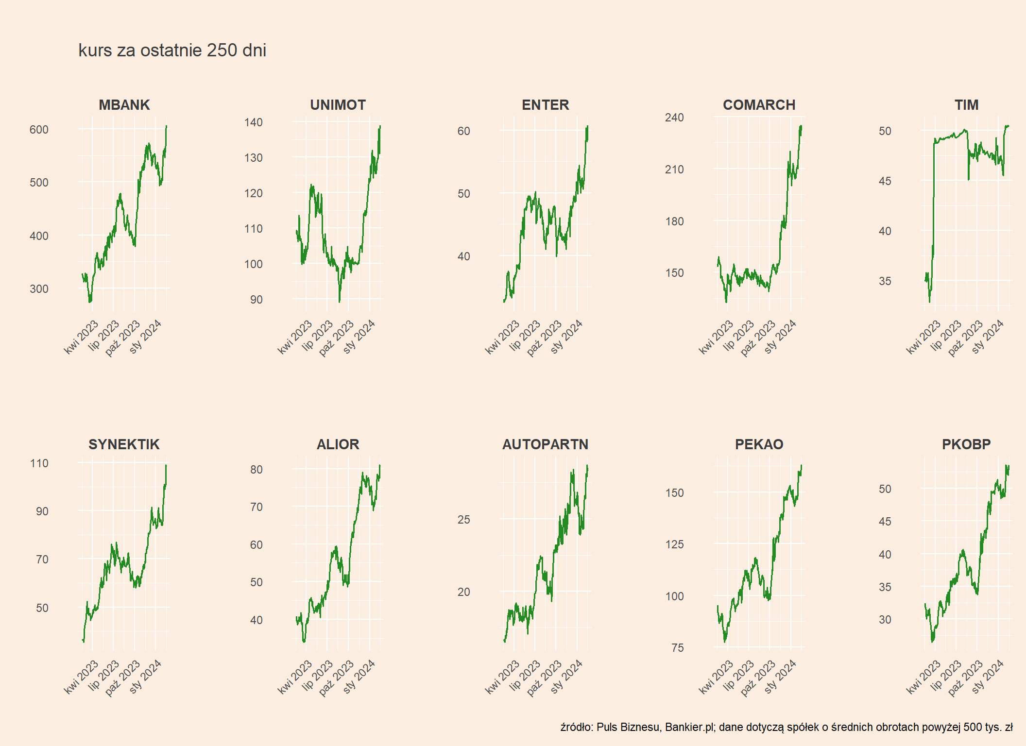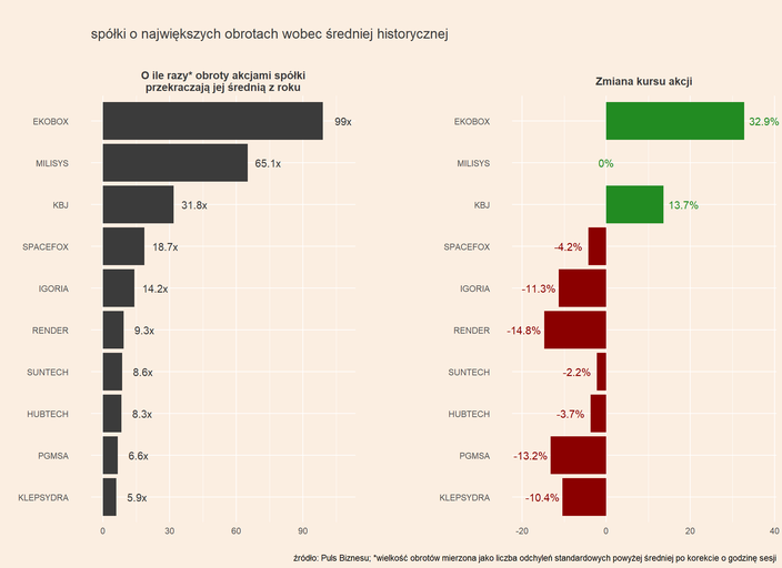 Ostro w górę idzie natomiast kurs Ekoboksu. W IV kwartale 2023 r. skonsolidowany zysk netto firmy, zajmującej się projektowaniem i wykonawstwem sieci elektroenergetycznych i telekomunikacyjnych, wyniósł 2,8 mln zł, prawie trzy razy więcej niż w analogicznym okresie 2022 r.