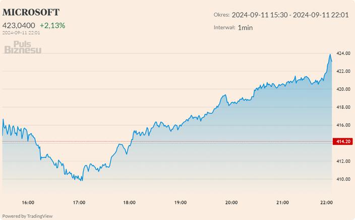 Akcje Microsoftu pozytywnie zareagowały na wiadomość o zwolnieniach. W czwartek zwyżkują one o 2,13 proc., dochodząc do poziomu 423 USD.