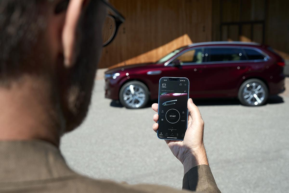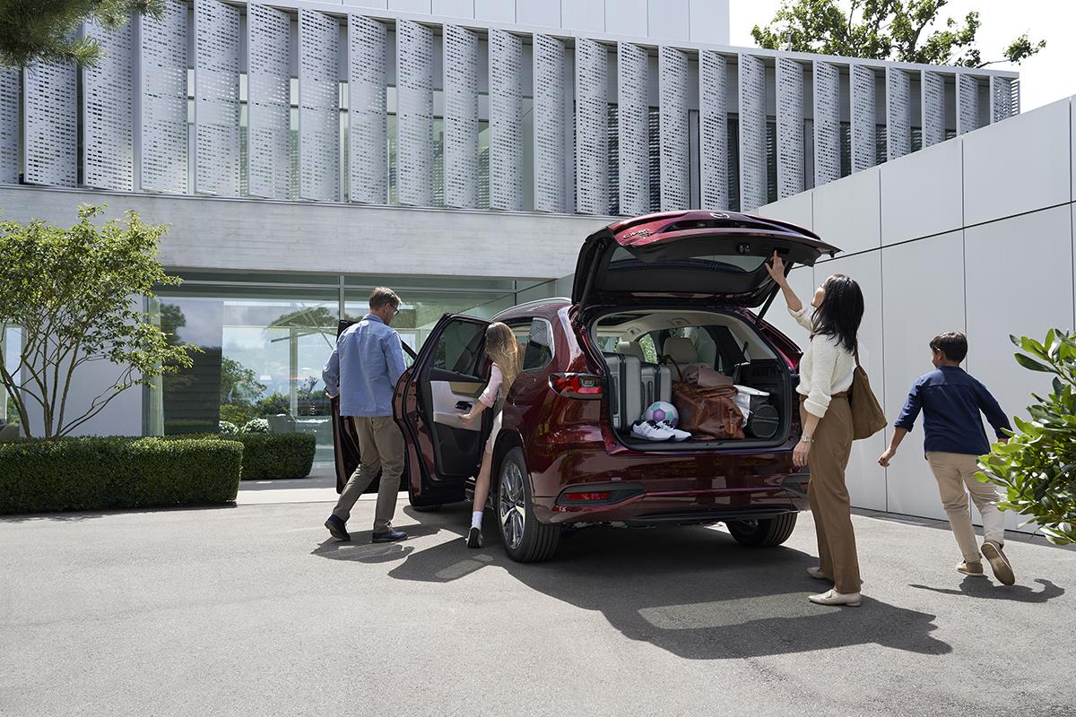 Przestrzeń na szpargały można łatwo powiększyć, podczepiając przyczepę. CX-80 poradzi sobie nawet z ważącą 2,5 t i to nie tylko w wersji z dieslem, ale również z hybrydą plug-in.