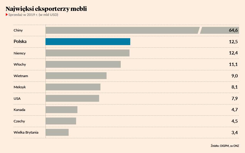 Już od 2019 r. nasz kraj jest drugim co do wielkości (po Chinach) eksporterem mebli na świecie. Wyprzedzamy m.in. Niemców i Włochów.