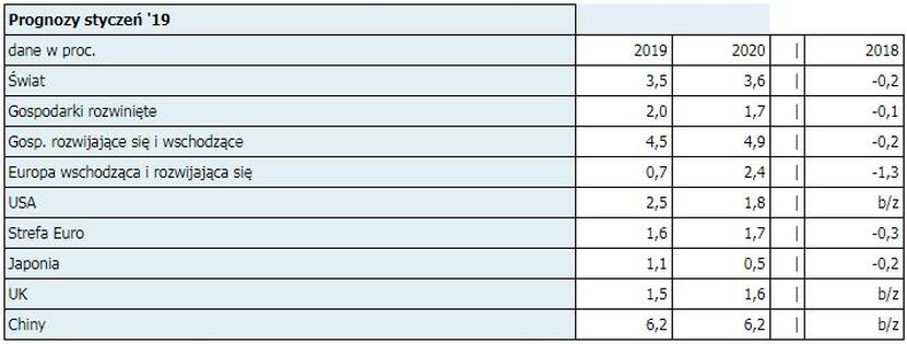 W tabeli poniżej znajdują się wybrane prognozy wzrostu PKB wg MFW, również w odniesieniu do poprzednich szacunków.