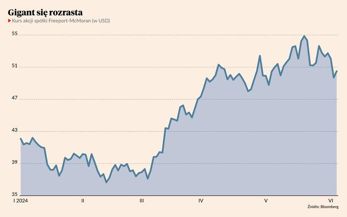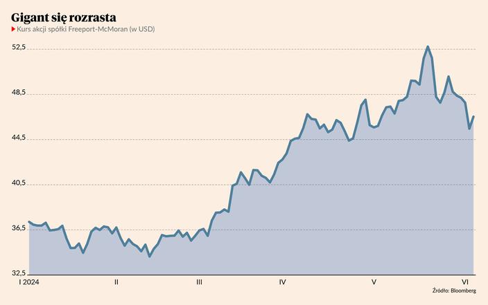 - Freeport-McMoran zajmuje się produkcją miedzi i złota, a nie posiada w portfelu pozostałych pierwiastków, w przeciwieństwie do innych globalnych spółek. Mimo że produkcję ma też w Ameryce Południowej i Północnej, to największa część aktywów znajduje się w Indonezji - mówi Jakub Szkopek, analityk Erste Securities.