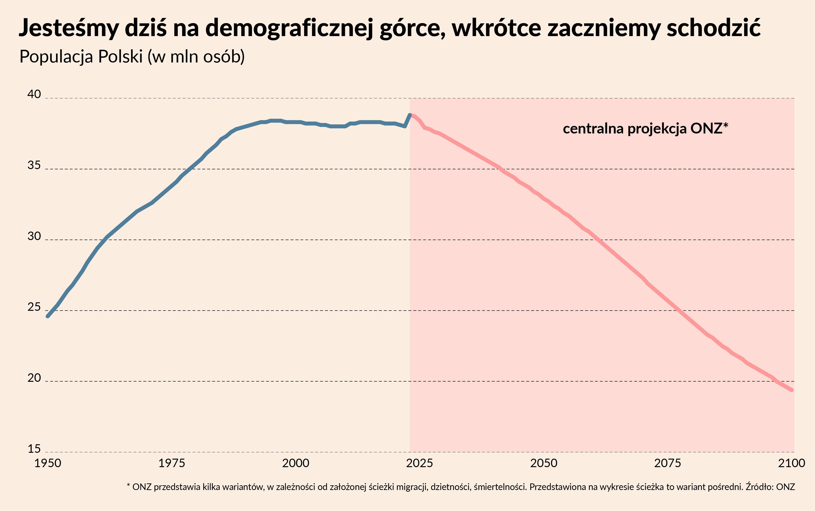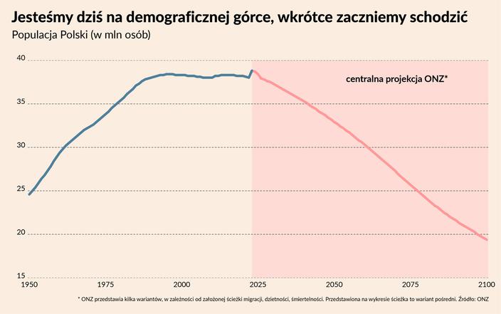 Polska będzie wyludniać się w szybkim tempie. Jesteśmy pod tym względem wśród 10 proc. krajów o największym przewidywanym procentowym spadku liczby ludności do 2050 r. (przewidywany przez ONZ spadek o 15 proc.) i wśród 7 proc. krajów o największym przewidywanym spadku ludności do 2100 r. (spadek o 50 proc.). Co ciekawe i ważne, blisko Polski pod tym względem są wszystkie kraje Europy Środkowej i Wschodniej, a także azjatyckie tygrysy: Tajwan, Korea, Singapur czy Hong Kong.