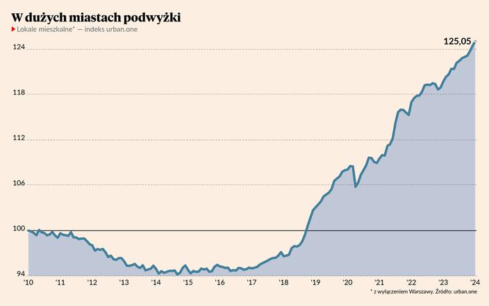 W styczniu wzrosła również wartość indeksu urban.one dla dużych miast i stolicy — w dużych miastach o 0,61 pkt, do 125,05 pkt, a w Warszawie o 1,41 pkt, do 123,61 pkt.