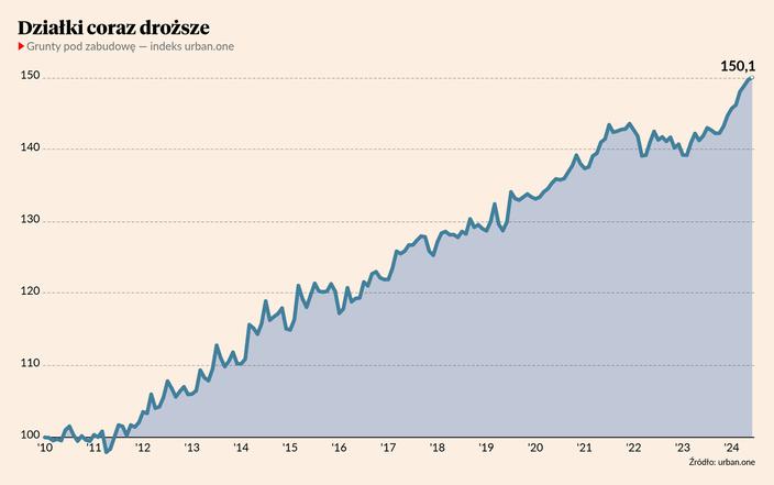 W czerwcu podrożały także grunty. Z badania Cenatorium wynika, że współczynnik urban.one dla tego segmentu urósł o 0,35 pkt — do 150,10 pkt.