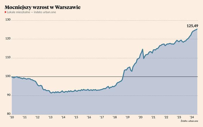 Stawki za metr mieszkań wciąż idą w górę. Opracowywany przez Cenatorium dla „Pulsu Biznesu” i Bankier.pl indeks urban.one urósł w czerwcu w porównaniu z majem o 0,18 pkt i wyniósł 113,39 pkt. Większe zwyżki odnotowano w Warszawie — urban.one wyniósł 125,49 pkt, o 0,4 pkt więcej niż miesiąc wcześniej.