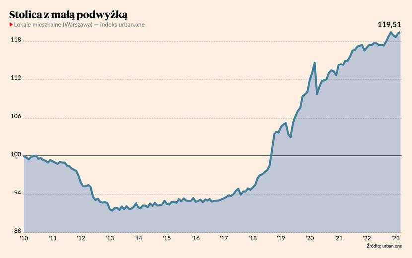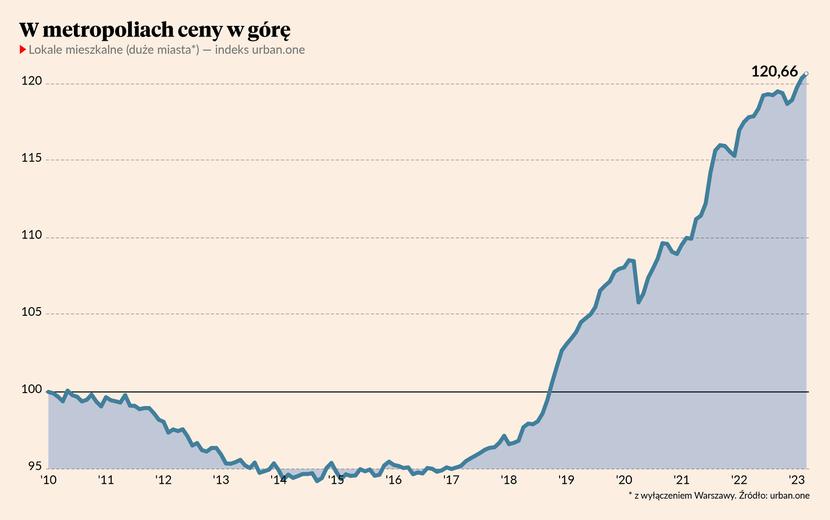 W Warszawie i największych miastach ceny transakcyjne nieznacznie wzrosły. W przypadku dużych miast wartość indeksu urban.one dla lokali mieszkalnych w marcu wyniosła 120,66 pkt. (wzrost o 0,31 pkt m/m), a dla stołecznego rynku 119,51 pkt (wzrost o 0,23 pkt).