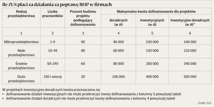 — Braki i błędy we wnioskach nie skutkują odmową skorzystania z pomocy. Staramy się wspólnie z zainteresowanymi je wypełnić lub poprawić. Uzasadnieniem do odrzucenia wniosku jest niespełnienie kryterium podniesienia bezpieczeństwa w pracy — wyjaśnia Wojciech Andrusiewicz. W ciągu 14 dni po podpisaniu umowy wnioskodawca otrzymuje maksymalnie 50 proc. przyznanego dofinansowania. Pozostała część jest rozliczana po zrealizowaniu przedsięwzięcia i akceptacji dokumentów sprawozdawczych (faktury, potwierdzenia zapłaty, wykonane pomiary, czy zdjęcia) — w terminie 30 dni od podpisania protokołu odbioru projektu.