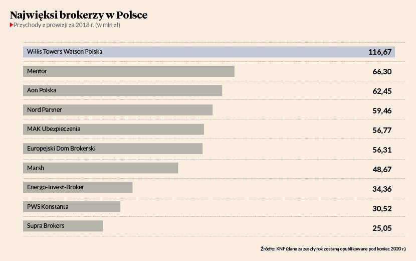798,9 mln zł- tyle przychodów z prowizji wypracowało 25 największych brokerów ubezpieczeniowych w 2018 r. Mają ponad 55-procentowy udział w rynku...