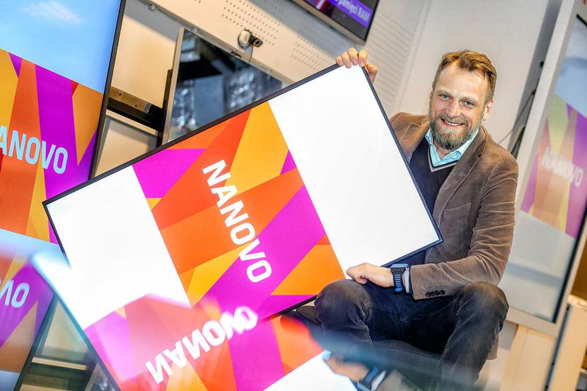 — Instalacja w Eurocentrum oddycha dwoma płucami. Pierwszym są montowane na ścianach ogromne, interaktywne nośniki DS, drugim — smartfonowe, kilkucalowe monitory pracowników i gości, na których mogą oni śledzić informacje o usytuowaniu biur, sal konferencyjnych i spotkaniach biznesowych — opisuje Piotr Badowski, prezes i jeden z założycieli spółki Nanovo.