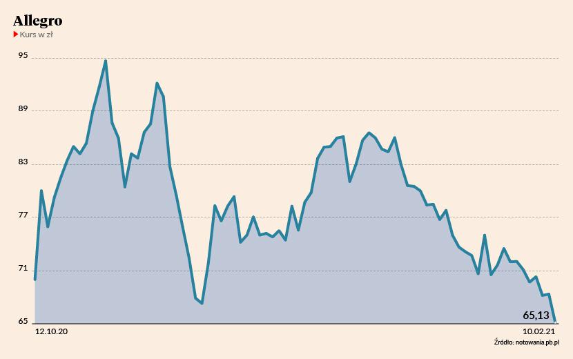 Z 14 rekomendacji dla Allegro cztery są pozytywne, siedem neutralnych, a 3 negatywne. Średnia z cen docelowych to 85,43 zł.