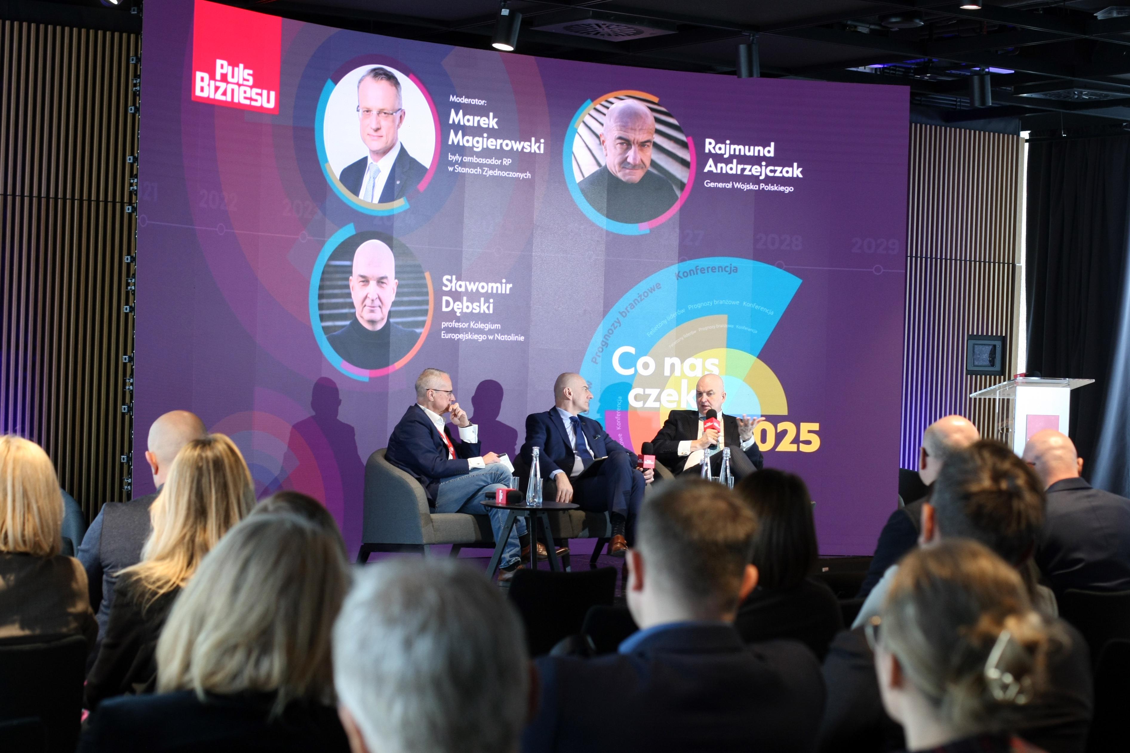 Czy Polska powinna wysłać żołnierzy na Ukrainę w ramach misji stabilizacyjnej, mimo wcześniejszego zapewnienia premiera Donalda Tuska, że nie jest to konieczne? To pytanie postawił Marek Magierowski, były ambasador Polski w USA i Izraelu, otwierając panel dyskusyjny z udziałem gen. Rajmunda Andrzejczaka, byłego szefa Sztabu Generalnego Wojska Polskiego, oraz Sławomira Dębskiego, historyka, profesora Kolegium Europejskiego w Natolinie. Aby zobrazować skalę takiego przedsięwzięcia, przywołał przykład strefy zdemilitaryzowanej na Półwyspie Koreańskim (wzdłuż linii o długości 248 km), wskazując, że linia frontu w Ukrainie (1200 km) wymagałaby znacznie większego zaangażowania - nawet 100 tys. żołnierzy.