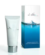 Rozświetlający krem ochronny La Vallee z filtrem SPF 30 blokuje promieniowanie słoneczne, zabezpieczając skórę przed przebarwieniami i fotostarzeniem. Zawiera m.in. czerwone algi, glikol kaprylowy, omżyn Dawida, tymianek i ekstrakt z cytryny.