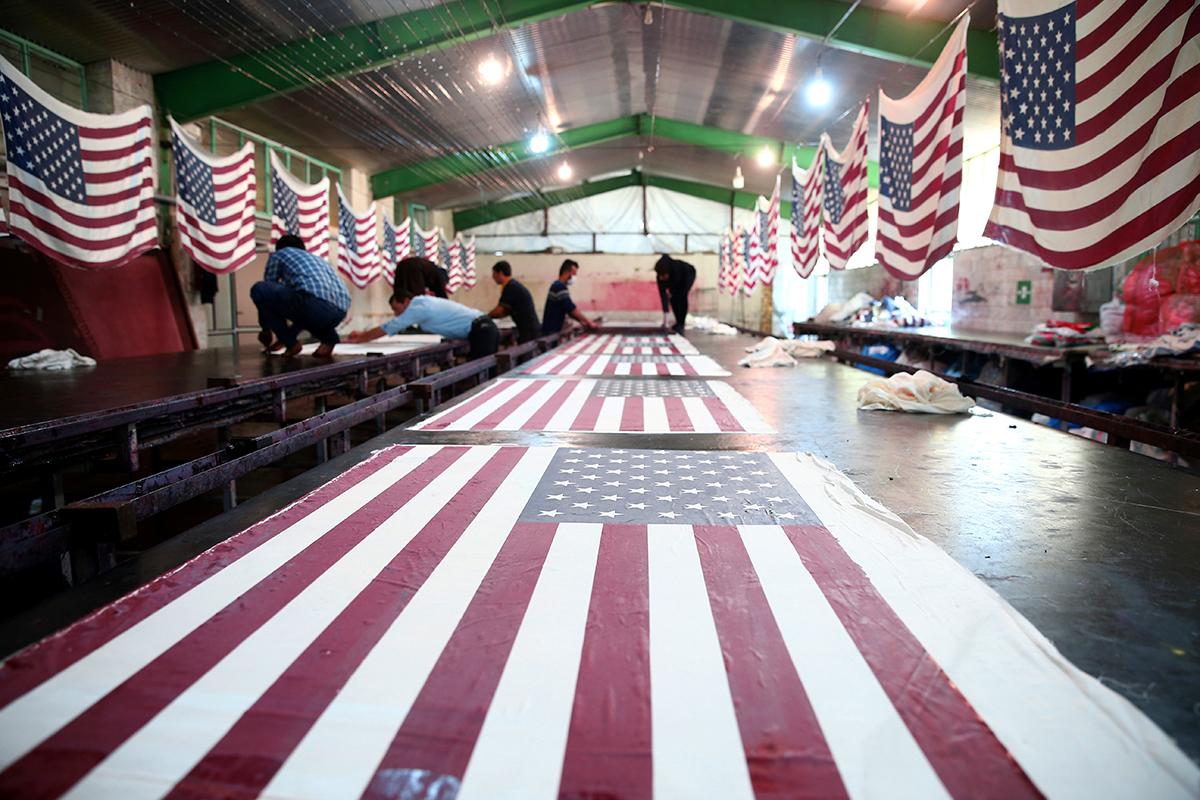 2. Irańska fabryka produkująca amerykańskie i izraelskie flagi dla irańskich demonstrantów, którzy je publicznie palą. Fot. Wana News Agency / Reuters / Forum