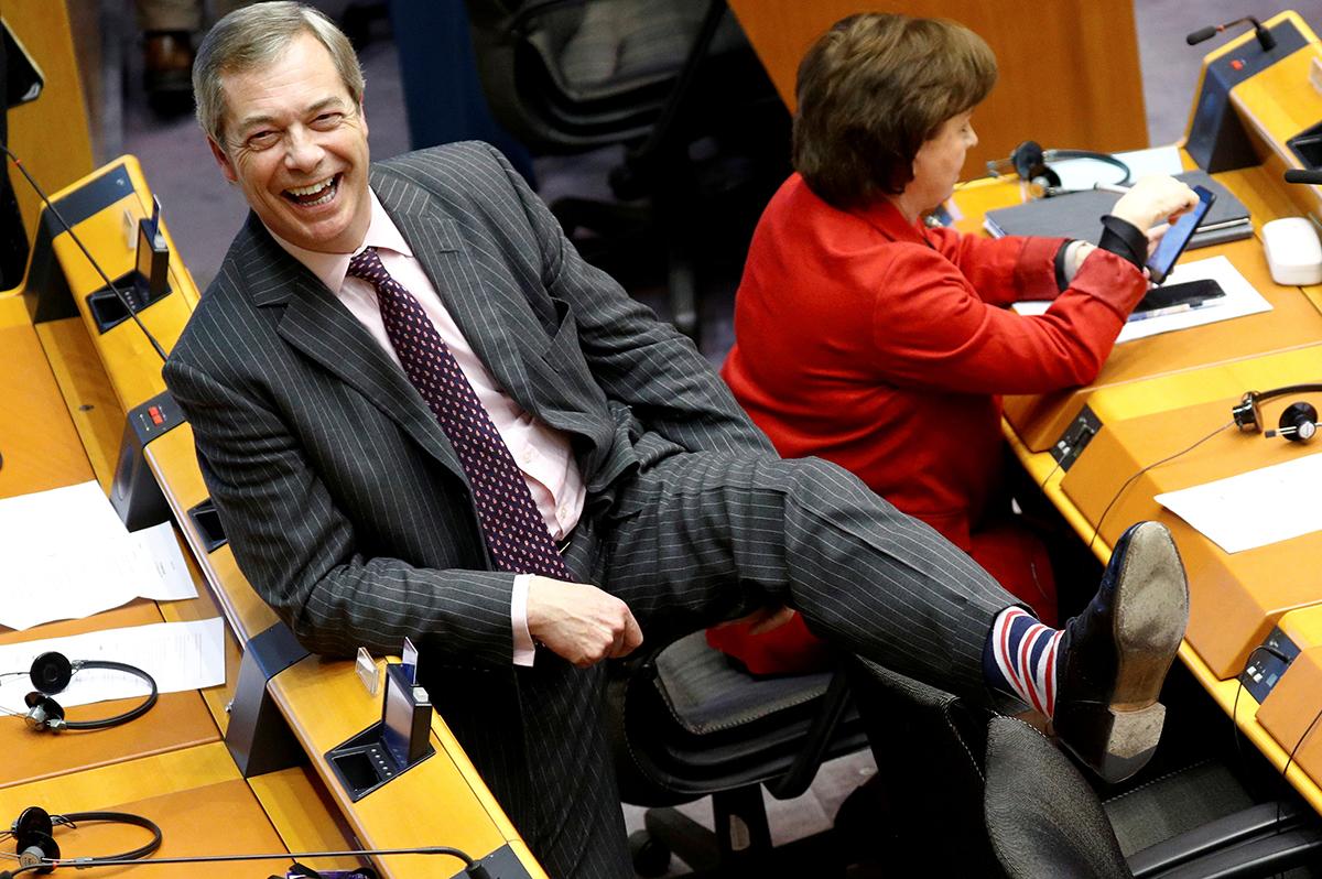4. Nigel Farage, lider Brexit Party podczas sesji Parlamentu Europejskiego. Fot. Francois Lenoir / Reuters / Forum