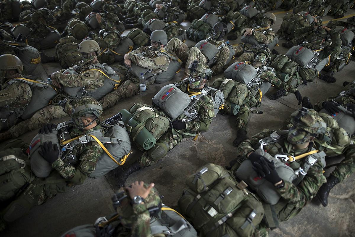 8. Amerykańscy i kolumbijscy żołnierze przygotowują się do ćwiczeń w bazie militarnej Tolemaida w Kolumbii. Fot. Ivan Valencia /Bloomberg