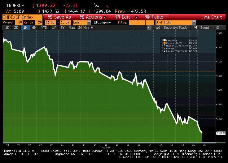 MICEX traci 1,6 proc., dolarowy RTS spada o 1,55 proc. W ubiegłym tygodniu akcje rosyjskich spółek taniały po ogłoszeniu nowych sankcji wobec Rosji w związku ze wspieraniem przez nią separatystów na wschodzie Ukrainy. W poniedziałek spadki są wynikiem obaw dalszego pogorszenia relacji Rosji z innymi państwami po strąceniu prawdopodobnie przez prorosyjskich separatystów samolotu pasażerskiego na Ukrainie.