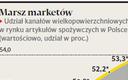 Rosnące jak grzyby po deszczu od połowy lat 90. sklepy wielkopowierzchniowe — dyskonty, supermarkety i hipermarkety — po raz pierwszy w historii polskiego rynku będą odpowiadały za ponad połowę sprzedaży artykułów spożywczych. Takie są prognozy firmy badawczej PMR. „Dzieje się to mimo problemów największych sklepów — hipermarketów — które tracą klientów przez znacznie zwiększoną konkurencję” — podkreślają eksperci PMR. Wzrost udziałów sklepów wielkopowierzchniowych w obrotach całego handlu to głównie zasługa dyskontów — zwłaszcza Biedronki, lidera polskiego rynku. Portugalska sieć, która dzisiaj zaprezentuje półroczne wyniki, co roku otwiera ponad 300 sklepów i osiąga już ponad 30 mld zł przychodów. Dla małych sklepów jest jednak nadzieja. „W najbliższych latach prognozujemy polepszenie sytuacji mniejszych sklepów dzięki formatowi convenience oraz sklepom specjalistycznym” — piszą eksperci PMR.