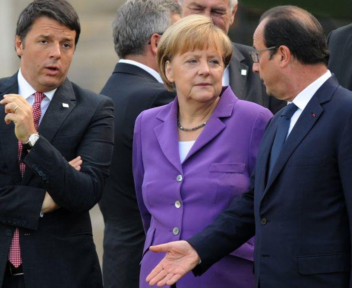 Premier Włoch Matteo Renzi, kanclerz Niemiec Angela Merkel, prezydent Francji Francois Hollande,