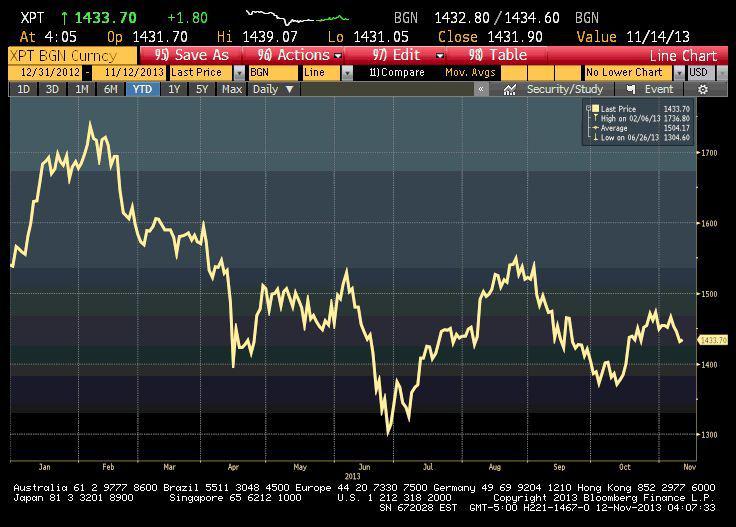 Platyna okazała się w tym roku lepszą inwestycją niż złoto i srebro mimo iż jego kurs spadł od początku roku o 6,8 proc. do 1435,30 USD za uncję. W okresie najbliższych sześciu miesięcy cena metalu ma mieścić się w przedziale 1360-1580 USD, czyli średnio 1465 USD, twierdzą analitycy Johnson Matthey.