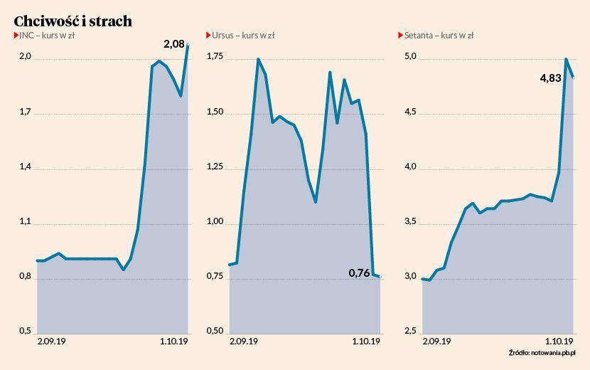 Emocje targały też w ostatnich tygodniach kursem Ursusa. Na podpisanie dokumentu z Enerkonem reakcją była zwyżka ceny akcji o ponad 100 proc. Kiedy okazało się, że nic z tego nie wyjdzie, notowania nurkowały o kilkadziesiąt procent.