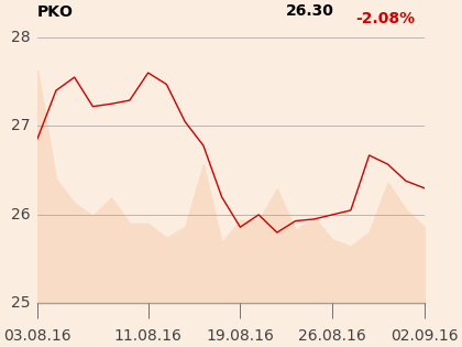 Specjalista podkreśla, że rynek od dłuższego czasu dyskontuje taki rozwój wypadków, o czym świadczy to, że wskaźnik ceny do wartości księgowej jest w przypadku PKO BP znacznie poniżej średniej dla banków z GPW.