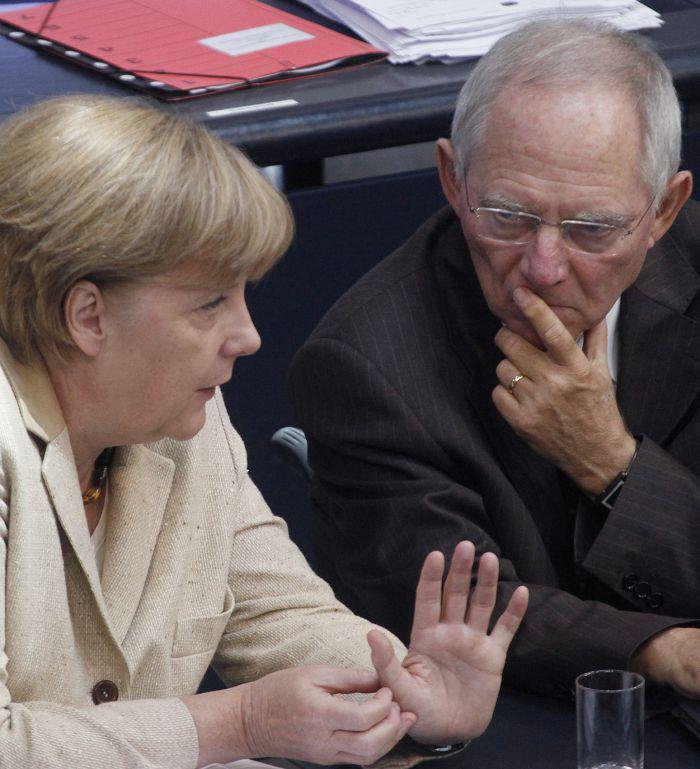 Kanclerz Niemiec Angela Merkel, minister finansów Wolfgang Schaeuble
