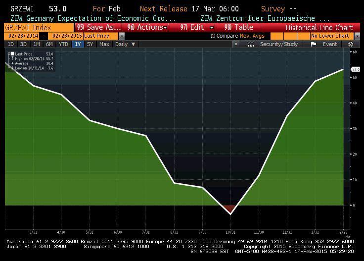 Nastroje niemieckich inwestorów mogło poprawić wysokie tempo wzrostu niemieckiej gospodarki w ostatnim kwartale 2014 roku. W ubiegłym tygodniu DAX, główny indeks niemieckiej giełdy, po raz pierwszy pokonał granicę 11000 pkt.