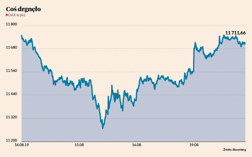 — Wzrost niemieckiego indeksu DAX wiązałbym z piątkową poprawą nastrojów na Wall Street, wypowiedziami Donalda Trumpa o tym, że rozmowy z Chińczykami idą w dobrym kierunku, informacjami z Chin o planach obniżenia kosztów kredytów korporacyjnych i grą pod ujawnienie zapisów z posiedzeń banków centralnych Stanów Zjednoczonych i Europy oraz sympozjum w Jackson Hole — wylicza Marcin Kiepas.