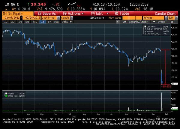 To kolejne efekt poniedziałkowego komunikatu, w którym zatrudniający 29 tys. pracowników gigant poinformował o przełożeniu publikacji raportu za 2012 r. w związku z koniecznością odpisu „co najmniej 100 mln EUR”.