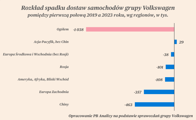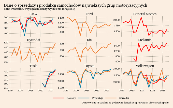 W niemieckich koncernach sytuacja nie jest tak jednoznaczna. BMW ma poziom sprzedaży (dostaw do klientów) na poziomie podobnym do 2019 roku, natomiast Volkswagen poza wyprzedażami na koniec roku nie powrócił do poziomu sprzedaży sprzed pandemii. Najważniejszym rozróżnieniem jest tutaj sytuacja w Chinach. W pierwszej połowie 2019 roku BMW dostarczyło w Chinach 350 tys. samochodów, a w analogicznym okresie 2023 roku - aż 393 tys.. W tym samym czasie grupa Volkswagen zmniejszyła liczbę dostarczanych pojazdów z 1,9 mln w pierwszej połowie 2019 roku do 1,45 mln w pierwszej połowie 2023 roku.