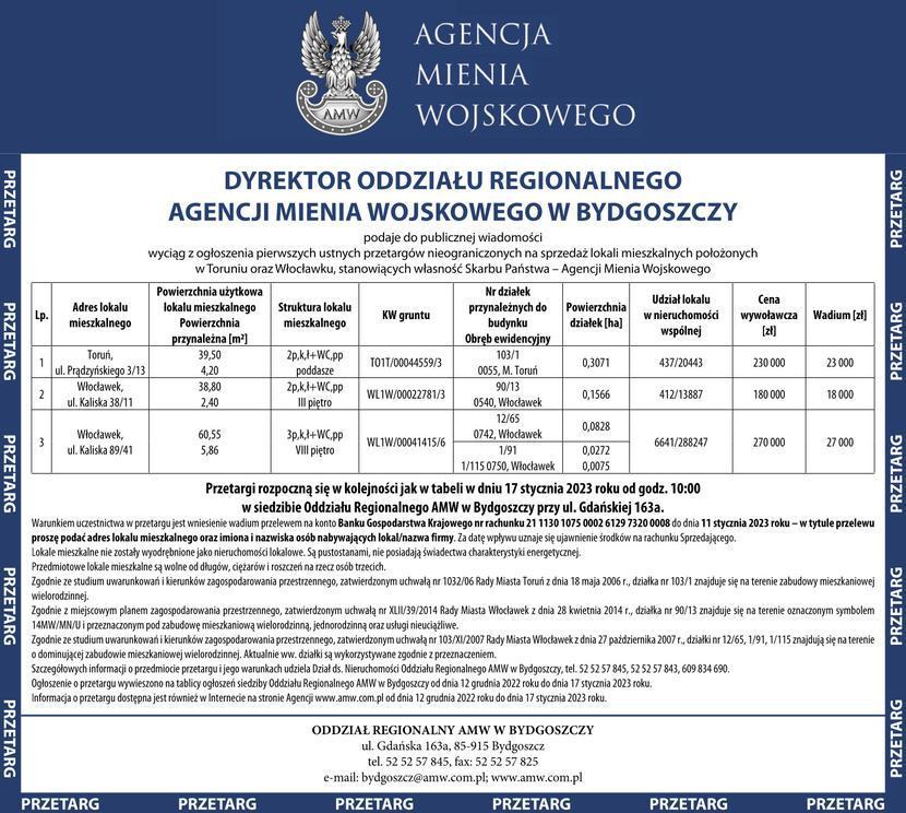 NIERUCHOMOŚĆ NA SPRZEDAŻ TORUŃ, WŁOCŁAWEK. AGENCJA MIENIA WOJSKOWEGO Komunikat partneraopublikowano: 2022-12-09 14:40PosłuchajZostań subskrybentemi słuchaj tego oraz wielu innych artykułów w pb.pl