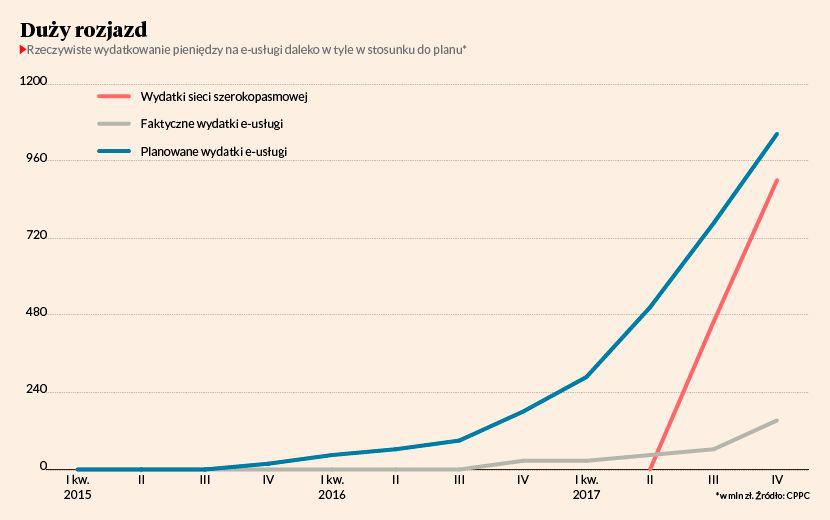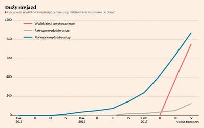 W czerwcu 2017 r. operatorzy telekomunikacyjni podpisali umowy na 1,9 mld zł dofinansowania na budowę sieci szerokopasmowych, a sami dołożą ok. 1,7 mld zł. W ramach projektów ma powstać 64 tys. km infrastruktury, głównie światłowodowej. Fakt, że na cyfryzację trafi mniej pieniędzy, niż planowano, oznacza mniej pracy dla firm informatycznych. Beneficjenci programu, czyli głównie duże instytucje państwowe, nie będą zamawiać usług IT.