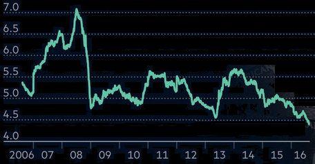 Rentowności, przy których notowany jest indeks obligacji skarbowych z krajów emerging markets obliczany przez bank BofA ML. Źródło: ft.com.