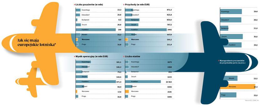 Dotychczas PPL był postrzegany jako maszynka do zarabiania pieniędzy, ale okazuje się, że na tle innych europejskich portów Lotnisko Chopina, którym zarządza PPL, wypada blado. Z 15 lotnisk ma najwyższy stosunek zatrudnionych na liczbę pasażerów. Niższe przychody od Chopina ma tylko Ryga, a mimo to w wynagrodzeniach Warszawa przebija cztery porty.