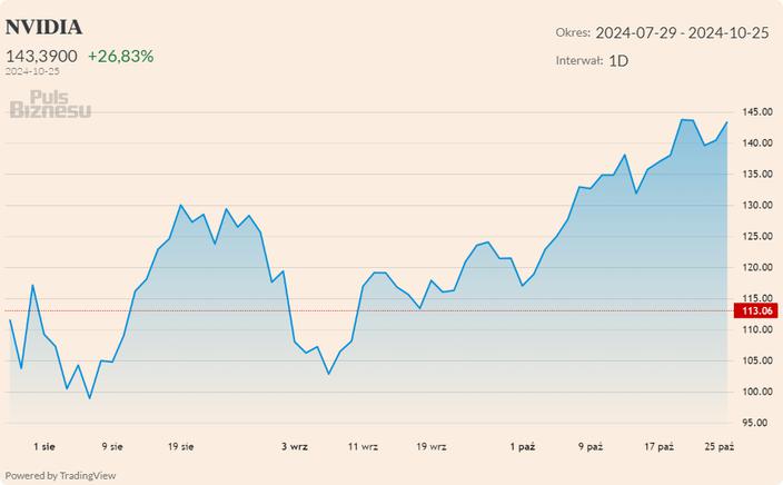 Akcje Nvidii osiągnęły rekordowe wartości we wtorek, napędzane pozytywnymi wynikami TSMC, największego na świecie producenta chipów kontraktowych, który ogłosił 54-procentowy wzrost zysku kwartalnego dzięki rosnącemu zapotrzebowaniu na układy AI. Kolejnym sprawdzianem dla Nvidii będą wyniki za trzeci kwartał, których publikacja planowana jest na listopad. W sierpniu Nvidia prognozowała przychody na poziomie 32,5 mld USD, z marginesem odchylenia 2 proc., podczas gdy analitycy obecnie szacują je średnio na 32,9 mld USD.
