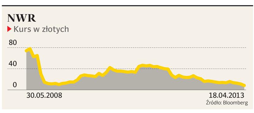 NWR opublikował dane o produkcji i sprzedaży w pierwszym kwartale — ta druga spadła, a ponadto zwiększyły się zapasy. Tylko nieznacznie wzrosła cena węgla koksującego na drugi kwartał, nie zmieniła się cena koksu, a cena węgla energetycznego mocno spadła (-6 proc.). Według Łukasza Kopcia z DM Banku BPS, planowana na ten rok zewnętrzna sprzedaż węgla na poziomie 9,5-10,5 mln ton będzie trudna do zrealizowania. Sama spółka podała zresztą, że cele na ten rok, przedstawione w lutym, nie zostaną osiągnięte. Nowych na razie nie przedstawiono. Inwestorzy jeszcze przyspieszyli wyprzedaż akcji spółki. Kurs spadał wczoraj prawie o 10 proc. i jest o 40 proc. niższyniż rok temu. Tak tanie akcje NWR nie były jeszcze nigdy — poprzedni dołek zanotowano w lutym 2009 r. (nieco ponad 10 zł), kiedy w branży hutniczej koniunktura była równie słaba jak obecnie. Czas pokazał, że był to dobry moment na stopniowe akumulowanie walorów producenta węgla.