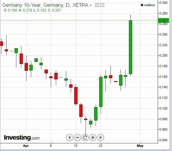Rentowność obligacji 10-letnich Niemiec wrosła w środę do najwyższej wartości od sześciu tygodni. Doszła do 0,28 proc.