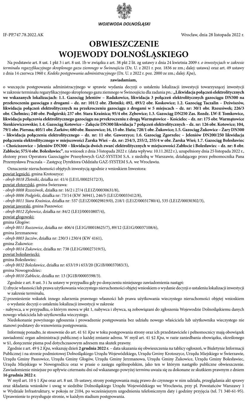 OBWIESZCZENIE Komunikat partneraopublikowano: 2022-12-01 13:33PosłuchajZostań subskrybentemi słuchaj tego oraz wielu innych artykułów w pb.pl