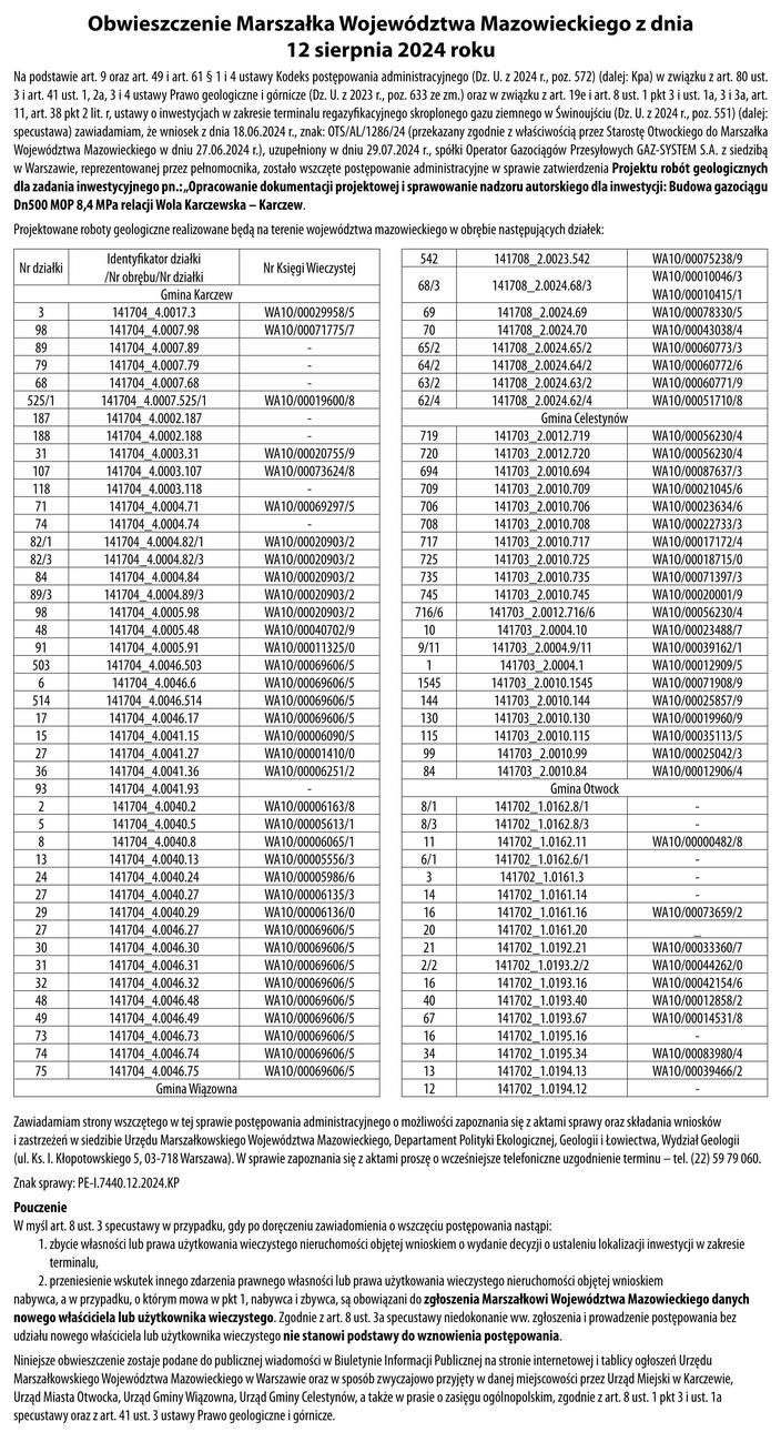 Obwieszczenie Marszałka Województwa Mazowieckiego Komunikat partneraopublikowano: 2024-08-14 15:53.PosłuchajZostań subskrybentemi słuchaj tego oraz wielu innych artykułów w pb.pl muw14082 muw14082