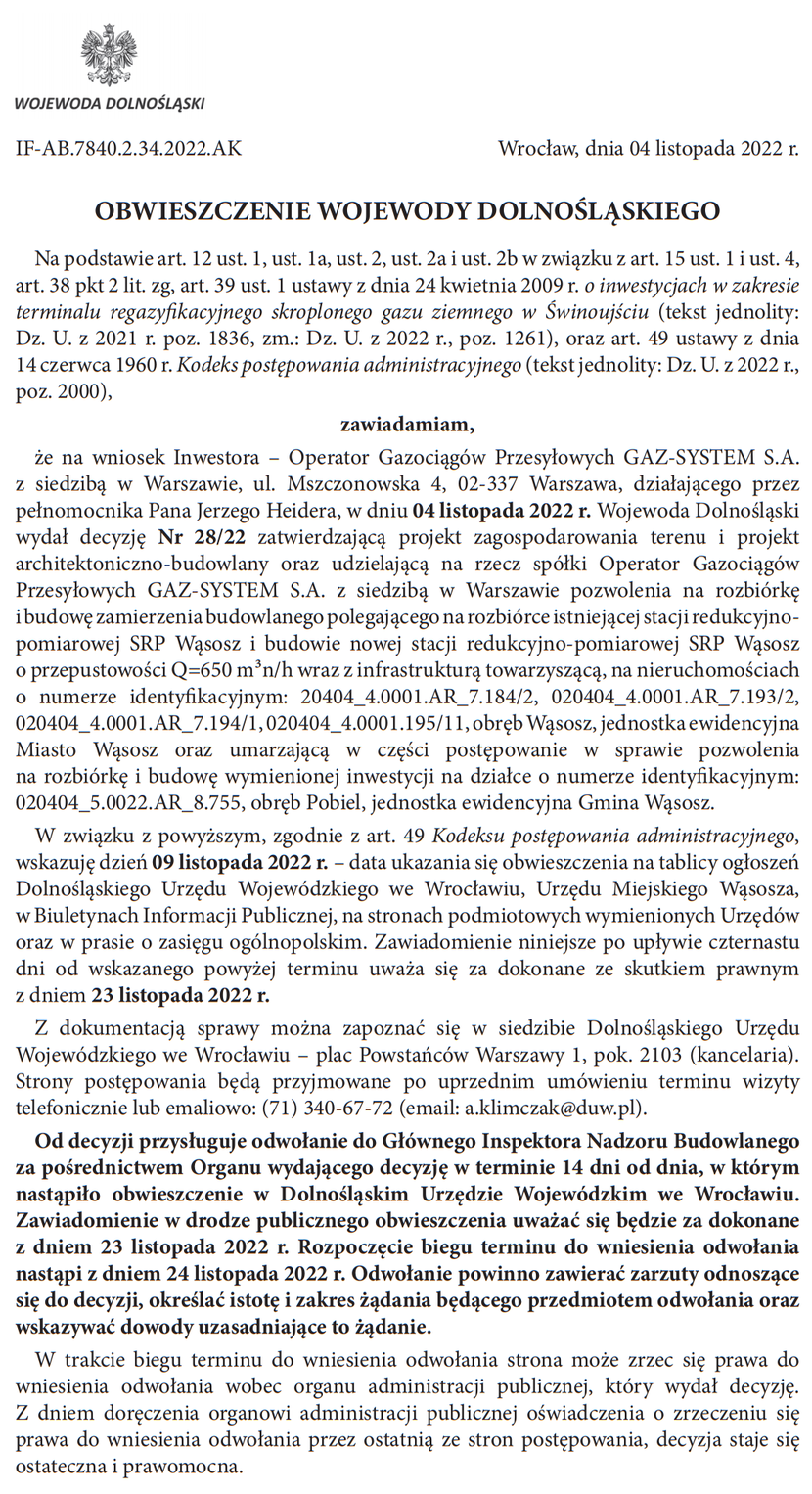 Obwieszczenie Wojewody Dolnośląskiego Komunikat partneraopublikowano: 2022-11-08 14:01PosłuchajZostań subskrybentemi słuchaj tego oraz wielu innych artykułów w pb.pl