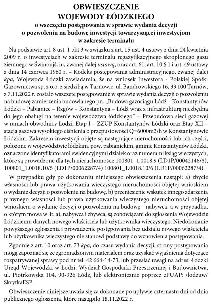 OBWIESZCZENIE WOJEWODY ŁÓDZKIEGO Komunikat partneraopublikowano: 2022-11-17 14:34PosłuchajZostań subskrybentemi słuchaj tego oraz wielu innych artykułów w pb.pl