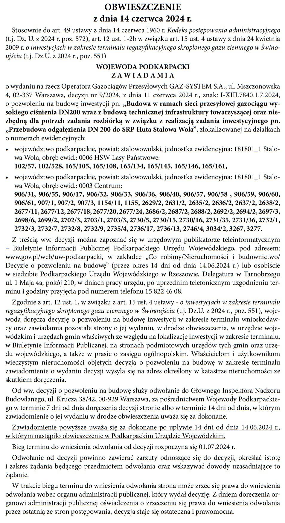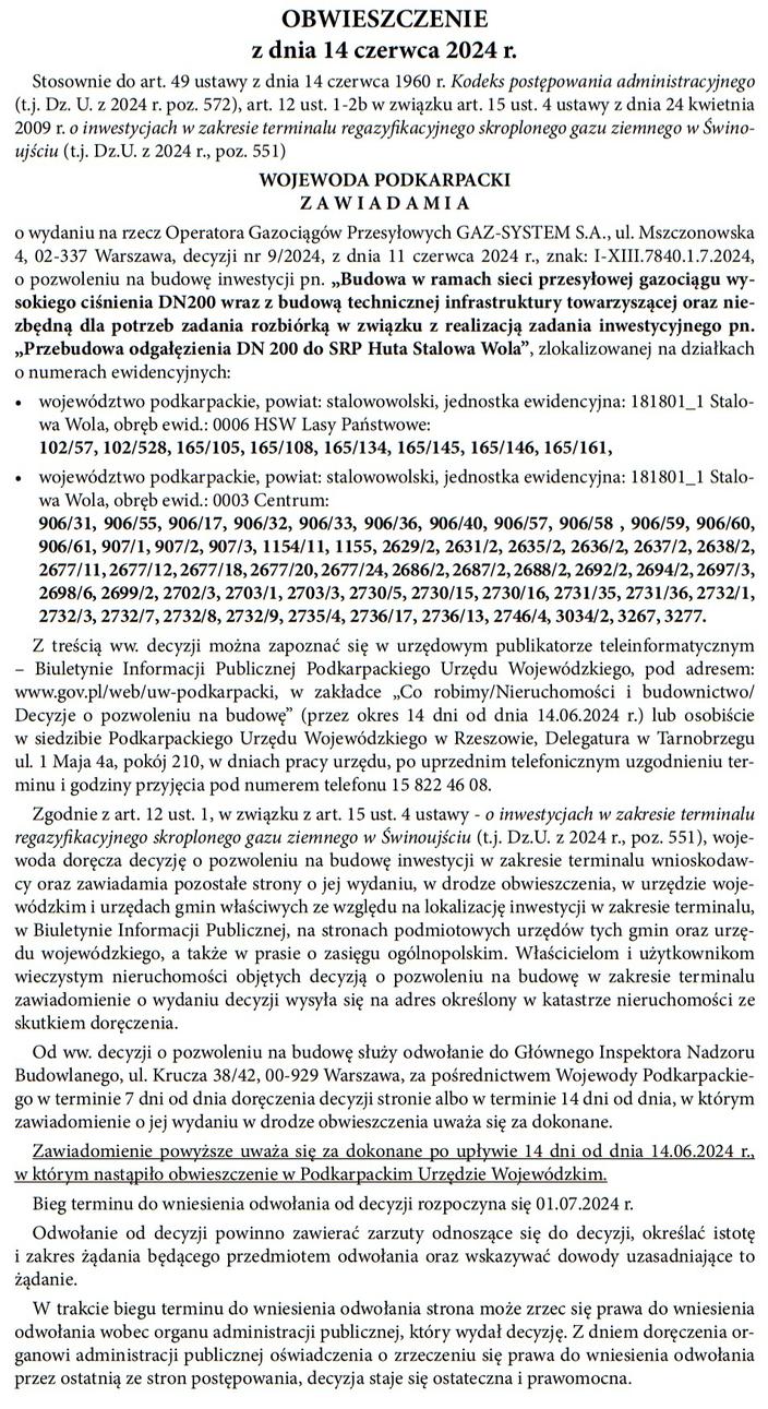 Obwieszczenie Wojewody Podkarpackiego Komunikat partneraopublikowano: 2024-06-13 14:31.PosłuchajZostań subskrybentemi słuchaj tego oraz wielu innych artykułów w pb.pl