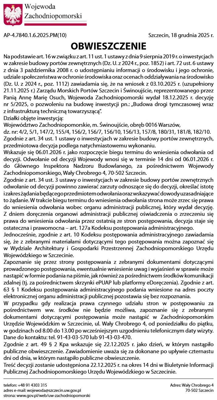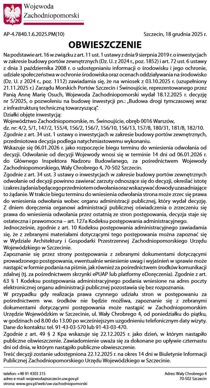 Obwieszczenie Wojewody Zachodniopomorskiego Komunikat partneraopublikowano: 2025-12-19 15:23.PosłuchajZostań subskrybentemi słuchaj tego oraz wielu innych artykułów w pb.pl FOT.