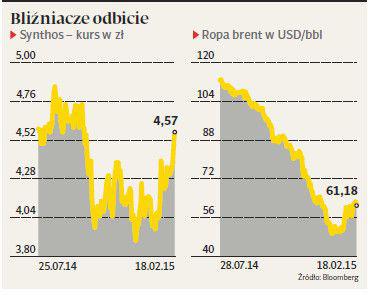 O 13 proc. wzrósł od 21 stycznia 2014 r. kurs Synthosu. W tym czasie WIG20 urósł tylko o 3 proc., ale ropa naftowa — o ponad 20 proc. Analitycy studzą jednak nadzieje na zmianę trwającego od wielu miesięcy trendu spadkowego na akcjach spółki.
