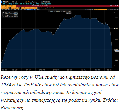 Departament Energii w USA powoli kończy uwalnianie rezerw strategicznych, które spadły do najniższego poziomu od 1984 roku! Teraz DoE chciałoby zacząć ponownie skupować ropę, choć poziomy cenowe nie są zbyt zachęcające.