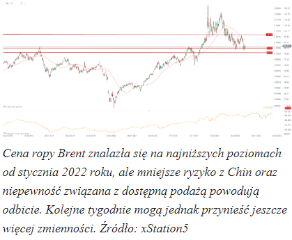 Niepewność związana z globalną gospodarką, a przede wszystkim przyszłością Chin doprowadziła do sporych spadków cenowych na rynku ropy w listopadzie. Chiny są oczywiście globalnym liderem pod względem importu ropy, dlatego spowolnienie gospodarcze lub nawet recesja mogą mocno wpłynąć na kształtowanie się cen. Jednak po fali protestów w Chinach w związku z restrykcjami władze zaczynają zmniejszać restrykcję. Teoretycznie mówi się, że w styczniu Covid-19 ma być traktowany na równo z innymi mniej inwazyjnymi chorobami. Co więcej, obecnie liczba aktywnych przypadków jest ocenia na ok. 40 tys. z czego zdecydowana większość jest bezobjawowa.