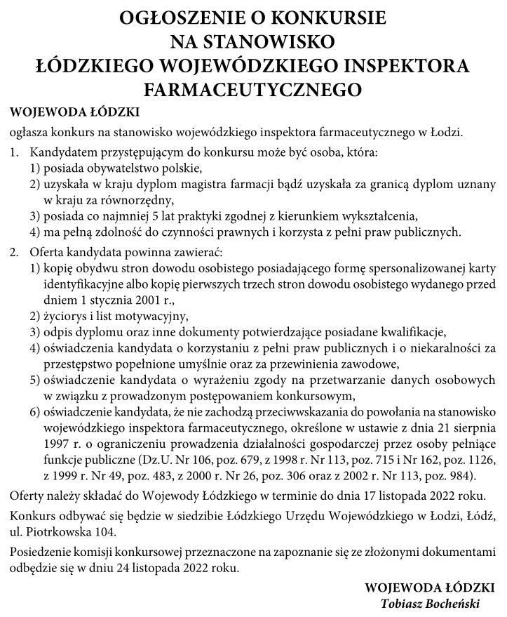 OGŁOSZENIE O KONKURSIE Komunikat partneraopublikowano: 2022-11-10 14:00PosłuchajZostań subskrybentemi słuchaj tego oraz wielu innych artykułów w pb.pl