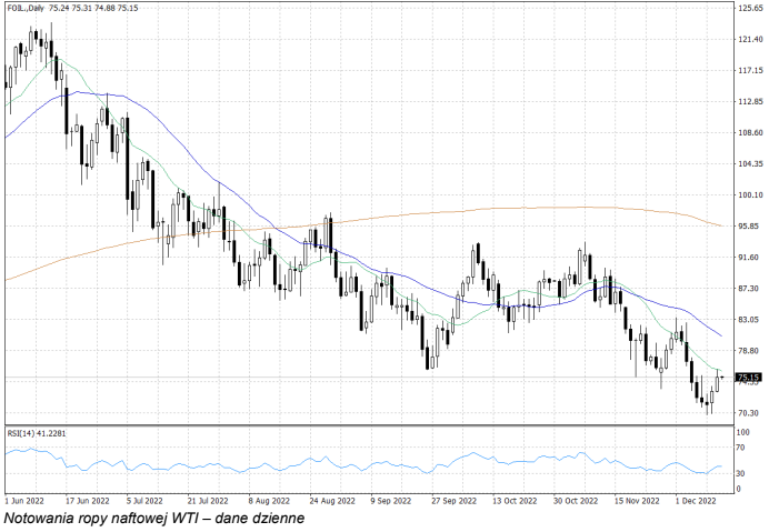 Po drugie, wczoraj opublikowany został raport kartelu OPEC dotyczący prognoz na 2023 rok. Według kartelu, w 2023 roku popyt na ropę naftową na świecie wzrośnie o 2,25 mln baryłek dziennie, czyli ok. 2,3%. Co prawda już wcześniej w tym roku prognozy te bywały wyższe, ale i tak wydźwięk raportu był raczej optymistyczny. OPEC zakłada bowiem przede wszystkim powrót do dużego popytu na ropę ze strony Chin, luzujących pandemiczne obostrzenia – a dodatkowo, jako czynnik sprzyjający wzrostowi popytu na ropę wymienia potencjalne uspokojenie konfliktu w Ukrainie.